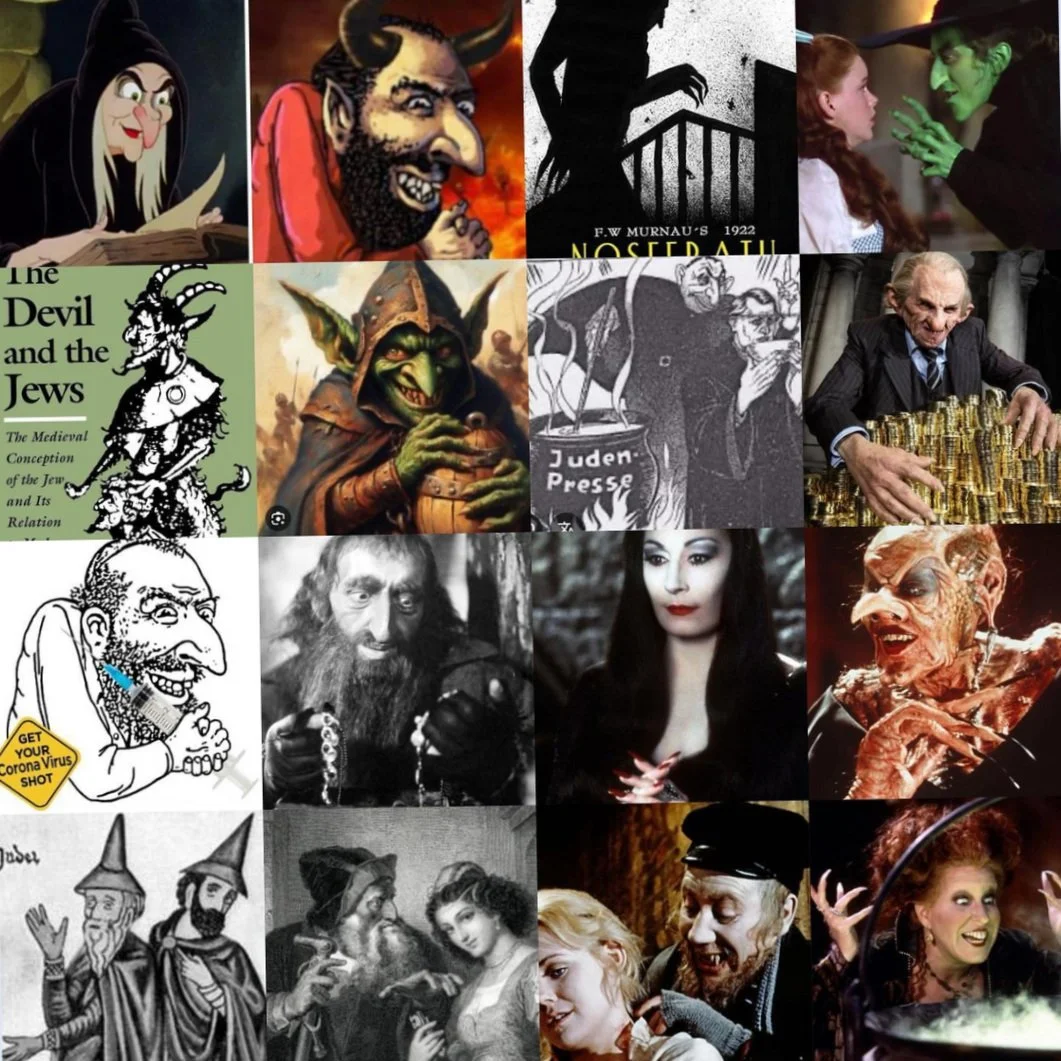 “Perhaps you’ve never thought about the aesthetic commonalities of the witches, goblins, vampires, and demons you grew up fearing. That’s okay. That’s how demonization works. Maybe you never linked the Wicked Witch or Nosferatu to Nazi-era caricatures of Jews. That’s also understandable. That’s how centuries of propaganda and scapegoating function. When societies need a scapegoat, the image is always the same: nefarious, subhuman creatures who supposedly drink the blood of babies and must be hunted or burned alive. They have hooked noses, grabby fingers, dark wild hair, dark eyes, and suspicious posture. Sometimes they even have horns and tails. This is why ancient visual propaganda still impacts how people feel about Jews, whether they recognize it or not.” [Source: Zoë Buckman via Instagram]